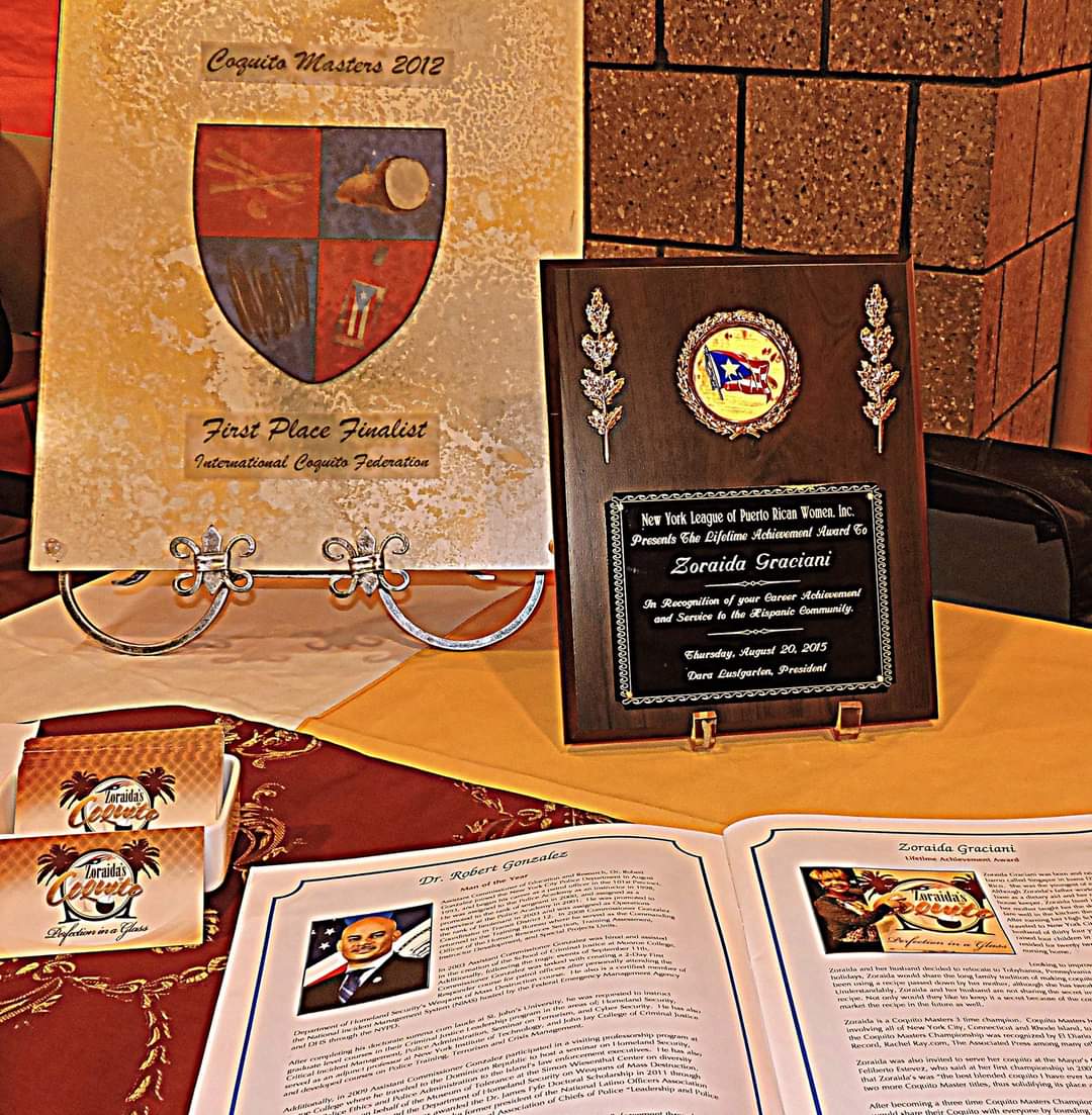 In 2008, Zoraida entered her first Coquito tasting competition, taking on forty-six other contenders. Feliberto Esteves, head chef at Gracie Mansion for Mayor Bloomberg and chief judge of the competition, declared it "The best blended Coquito I've tasted yet." Zoraida won the championship that year—and went on to win two more Coquito Master titles, solidifying her place among the best.